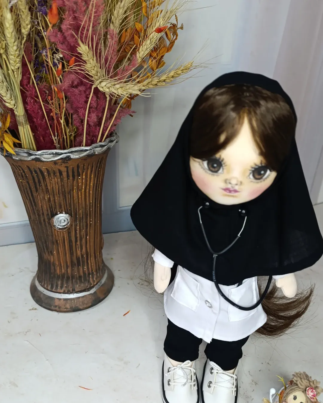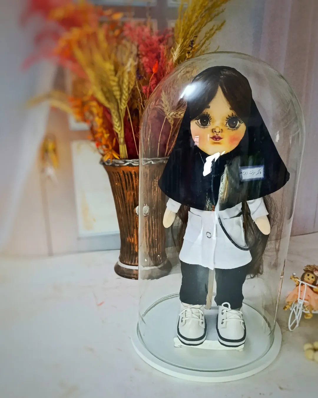 این «دکتر کوچولو» فقط یک عروسک نیست… یک یادگاری مخصوص برای کسی است که هر روز جان آدمها را نجات میدهد. از روپوش سفیدش تا ریزترین جزئیات چهرهاش، همه را با دست و با وسواس دوختم تا تبدیل شده به هدیهای که باهات حرف میزنه.